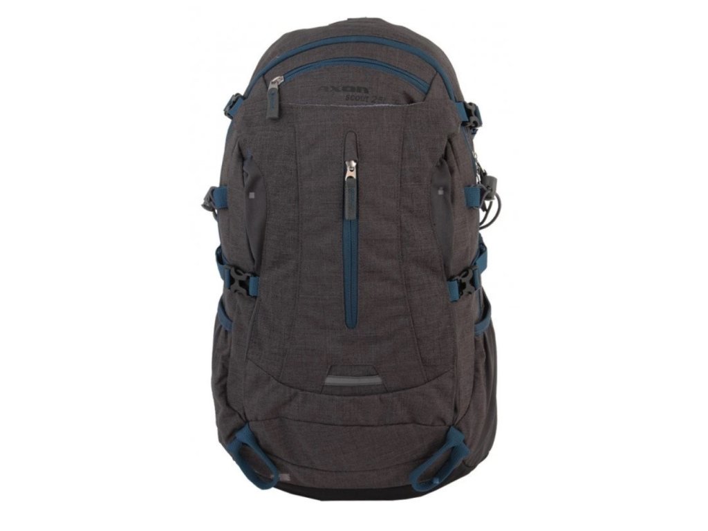 Batoh Axon Scout 25L (antracit) je univerzální sportovní a turistický/cyklistický batoh s objemem 25 litrů, navržený pro jednodenní výlety s větším množstvím potřebných věcí. Hlavní předností je polstrovaný a odvětraný zádový systém FAS, který zajišťuje komfort a dobré proudění vzduchu.Batoh je vybaven šesti kapsami, včetně bočních síťovaných a přední kapsy na zip, a je uzpůsoben pro použití s vakem na vodu. Dále disponuje anatomickými ramenními popruhy, nastavitelným prsním popruhem, kompresními popruhy, úchyty na hole, reflexními prvky a integrovanou signální pláštěnkou.
