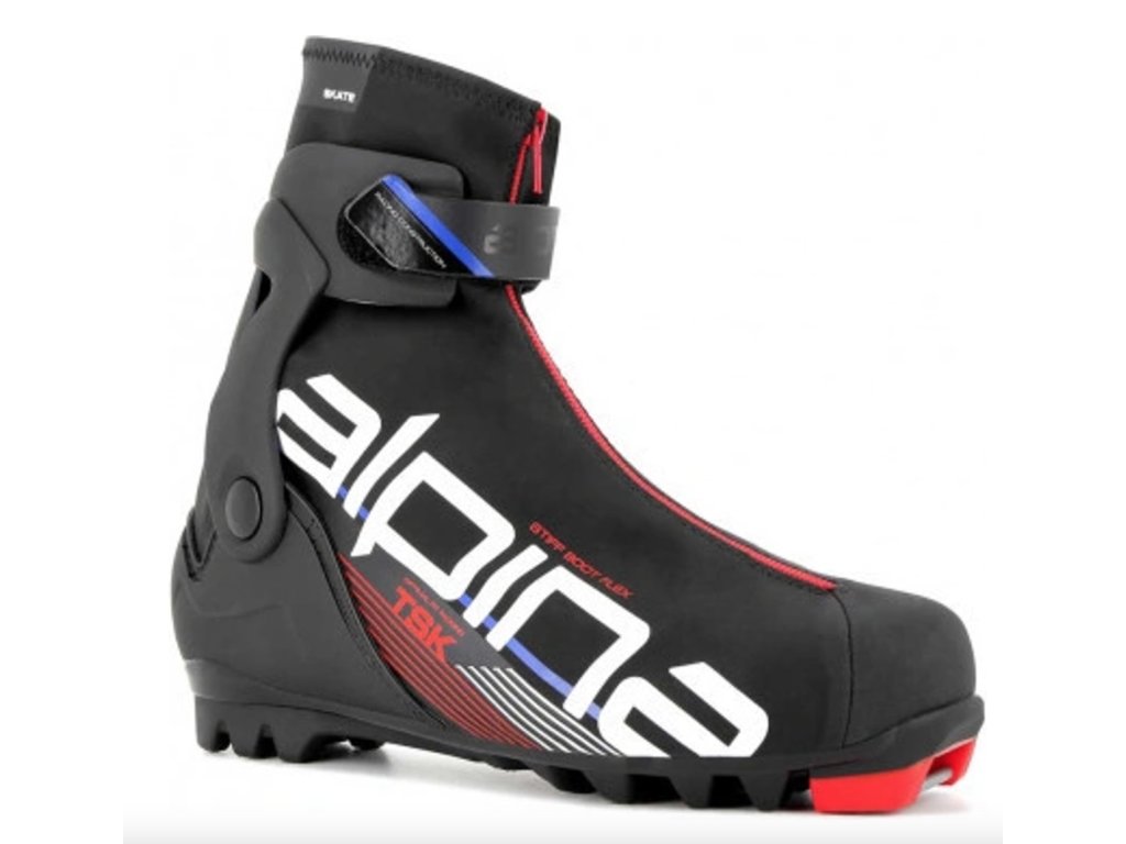 Starší model. Sportovní běžecké boty Alpina TSK Skate na systém vázání NNN nebo Prolink byl vyroben pro potřeby všech aktivních sportovců i hobíků. Běžkařské boty vhodné na bruslení. Dvoudílná otočná manžeta z rozdílně tuhých plastů pro excelentní boční stabilitu a oporu, torzní kontrolu a maximální přenos energie. Pevné upnutí nohy s délkově nastavitelným páskem. Vnitřní šněrování, svršek s vrchním uzávěrem na zdrhovadlo pro omezení vnikání sněhu a vlhkosti dovnitř obuvi. Vnitřní anatomická stélka – komfortní lůžko pro chodidlo zesiluje pocit pohodlí v obuvi. Pohodu a komfort nohy při výkonech pomáhá zateplení Thinsulate.
