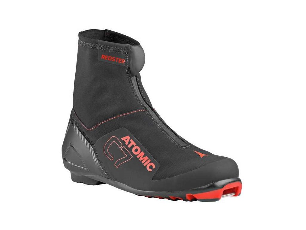 Atomic Redster C7 je výkonnostní běžecká bota určená pro klasickou techniku, která spojuje precizní vedení, efektivní přenos síly a komfort vhodný i pro delší tréninky. Patří do závodní řady Redster, což znamená, že byla navržena s důrazem na výkon, lehkost a stabilitu – ideální pro sportovně založené běžkaře a závodníky, kteří chtějí dosáhnout maximální efektivity v odrazu i skluzu. Bota má závodní střih Race Fit, který pevně obepíná nohu a zaručuje přímý přenos energie do lyže bez ztrát. Pevný 3D External Heel Counter stabilizuje patu, čímž zabraňuje nežádoucímu pohybu chodidla a zvyšuje jistotu při odrazu. Vrchní materiál je lehký, odolný a díky technologii Atomic Air Control prodyšný – dvojitá membrána umožňuje únik vlhkosti, ale zároveň chrání před vniknutím sněhu a vody, takže nohy zůstávají v suchu a teple i při intenzivním tréninku. Šněrovací systém 3D Race Lacing rovnoměrně obepíná nárt a umožňuje přesné utažení, zatímco krycí zip chrání tkaničky před sněhem a ledem. Vnitřní část boty využívá pěnové výstelky s technologií Live Fit, které se přizpůsobují tvaru chodidla a zajišťují komfort bez ztráty opory. Podešev Prolink je kompatibilní se systémy NNN® a Turnamic®, což zaručuje širokou použitelnost s většinou moderních klasických vázání. Tuhost podrážky je optimalizována pro klasický styl – poskytuje citlivý odraz a zároveň dostatečnou flexibilitu ve špičce pro plynulý krok. Celkově působí Atomic Redster C7 jako závodní, ale stále pohodlná bota pro náročné sportovní běžkaře. Nabízí skvělou rovnováhu mezi výkonem a komfortem, vynikající stabilitu paty, precizní fit a moderní design v červené barvě charakteristické pro závodní řadu Redster.Doplňkové parametry