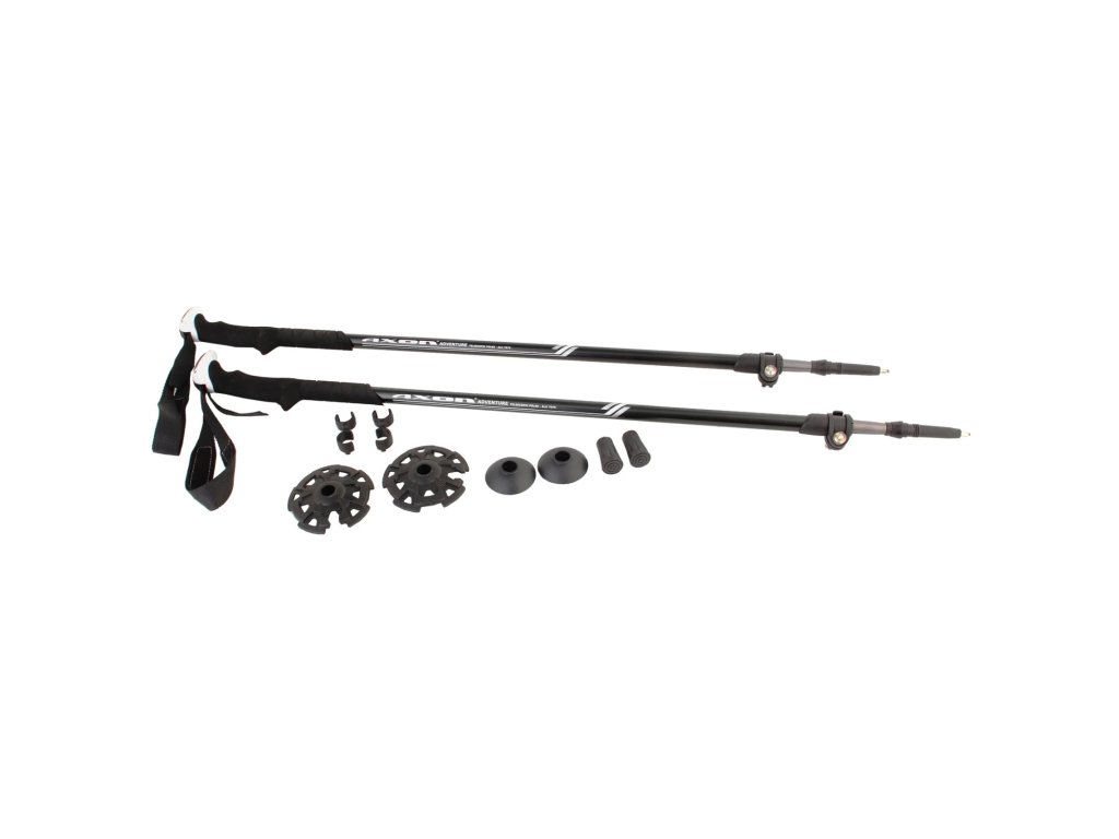 Turistické 2-dílné hole určené zejména na nordic walking Axon Adventure jsou vyrobené z hliníku, který je velmi lehký, ale odolný. Hrot je tvrzený se sadou talířků. Tvarovaná prodloužená rukojeť z EVA pěny vám zaručí příjemné držení. Navíc díky ní a výměnným sněhovým talířkům, máte možnost využít hole i v rámci zimních aktivit (sněžnice, skialpinismus).Doplňkové parametry
