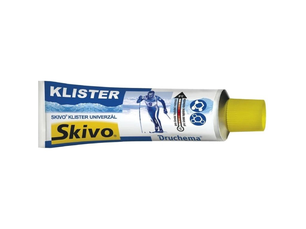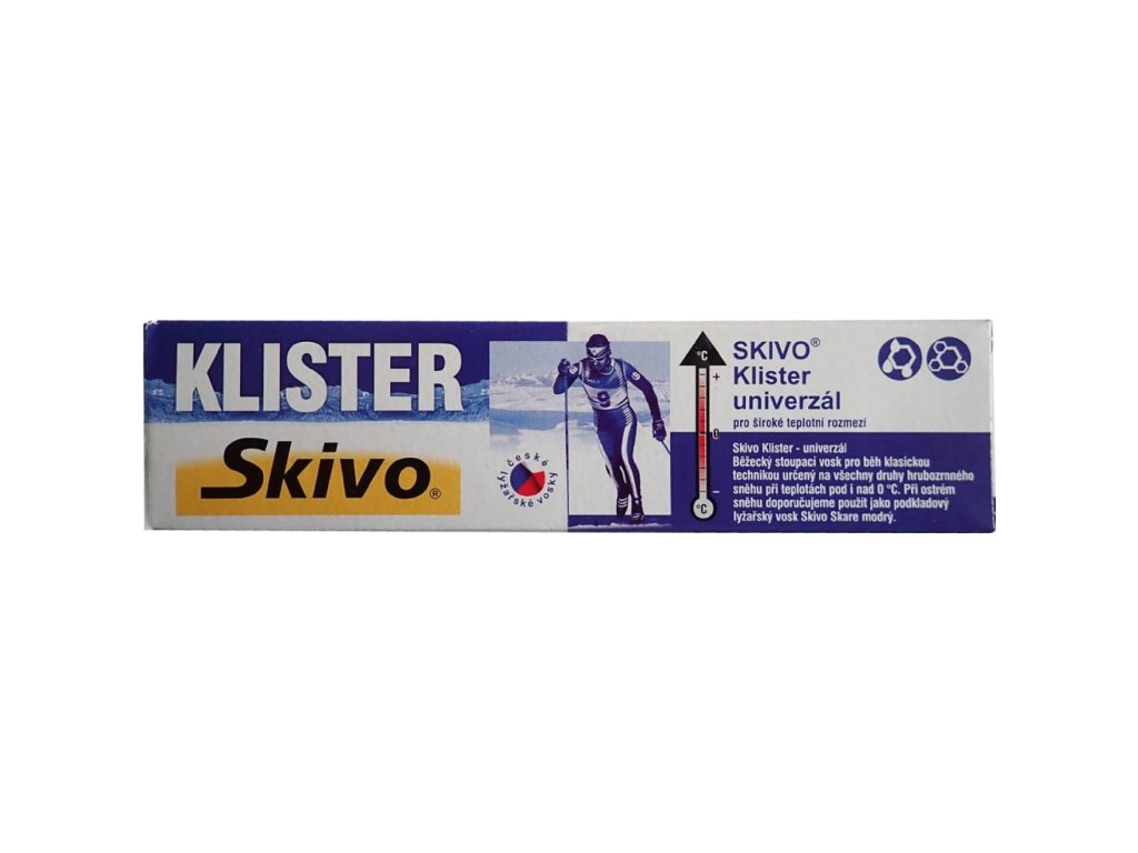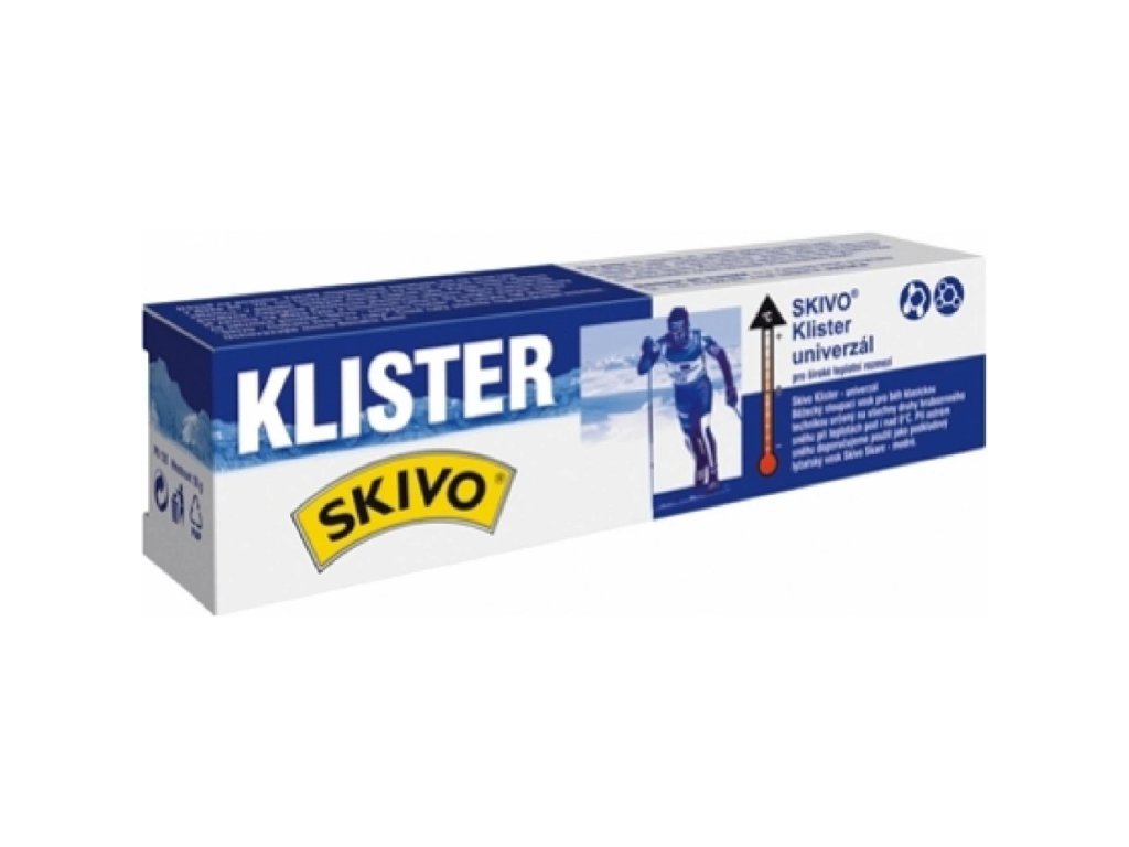 Skivo Klister Universal je univerzální běžecký stoupací vosk ve formě klisteru o hmotnosti 50 g, který zajišťuje dobrý odraz a stoupání na hrubozrnném sněhu, jako je mokrý, starý přemrzlý, zmrzlý sníh či jarní firn. Je určen pro široké teplotní rozmezí, které pokrývá jak teploty kolem 0 °C, tak i vyšší a nižší, čímž je vhodný pro proměnlivé sněhové podmínky.Doplňkové parametry