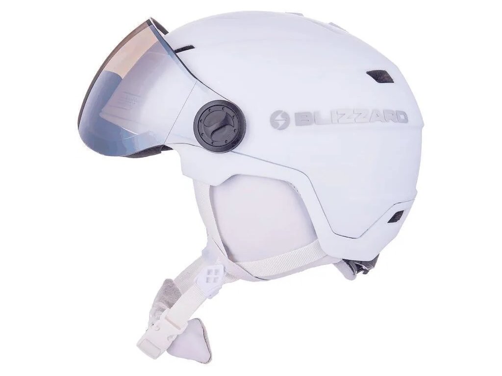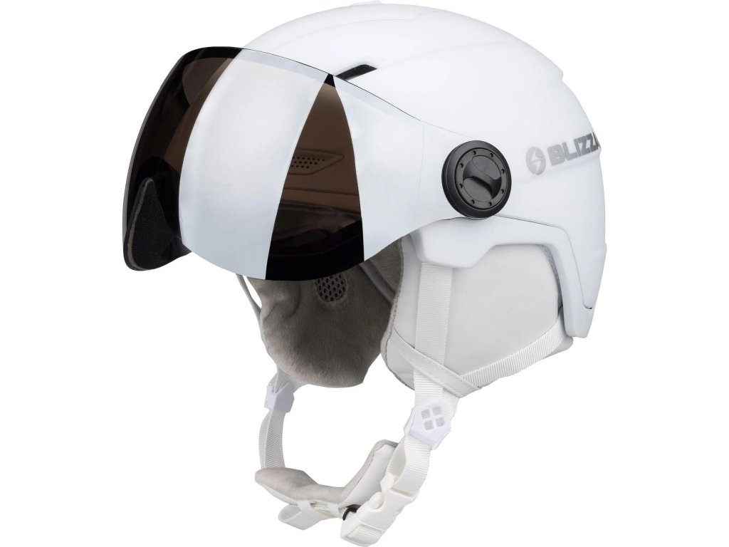 Dámská lyžařská helma značky Blizzard je vyrobena moderní In-Mold technologií, která zajišťuje její nízkou hmotnost (460 g) a vysokou odolnost proti nárazům.Její hlavní předností je integrovaný sklopný štít (visor) s filtrem CAT 2, který slouží jako lyžařské brýle a efektivně chrání před UV zářením.