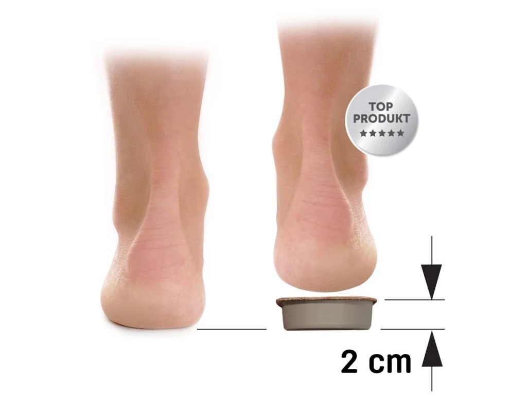 Podpatěnka je určena k vyrovnání rozdílu výšky dolních končetin, ke zmírnění zátěže paty nebo prodloužení achilovky. Vyrobena z lehkého, pohodlného a tvarově stálého PU materiálu pro zajištění stability, s vrchní nášlapnou částí potaženou jehněčí usní; lze ji snadno připevnit do obuvi přiloženými samolepicími kolečky, Výška 2 cm, přičemž je doporučeno použití v obuvi s maximálním výškovým rozdílem paty do 2 cm.Doplňkové parametry