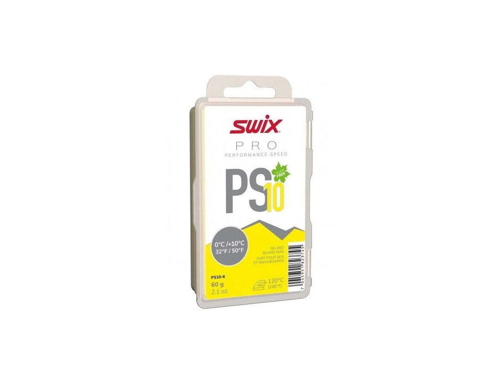 SWIX PS10 Performance Speed je servisní balení (60 g) skluzného vosku ve formě tradičního bloku, které je určeno pro teplé podmínky, konkrétně pro teploty Teplota vzduchu od 0 °C do +10 °C. Jedná se o bezfluorový parafín z řady PS, který je skvělý pro promazávání nových nebo nově strukturovaných lyží, ale může být použit i jako ekonomický závodní nebo tréninkový vosk; nahrazuje starší typ SWIX CH10X. Vosk se zažehluje při doporučené teplotě žehličky 120 °C.Doplňkové parametry